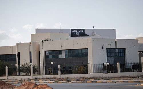 Cờ của IS tại một trung tâm hội nghị ở Sirte, Libya. Ảnh: The Telegraph