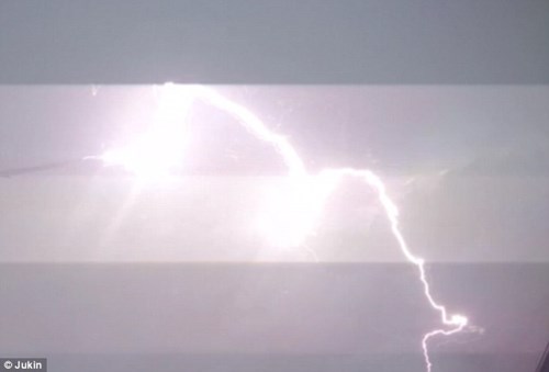Khoảnh khắc tia sét đánh trúng phần cánh máy bay được hành khách ghi lại. Ảnh: Dailymail