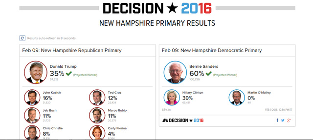 Kết quả bỏ phiếu tại New Hampshire (dựa theo thông số của các exit poll). Ảnh: NBC News