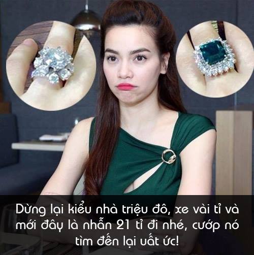 Khoảng tháng 4.2015, Hà Hồ khoe nhẫn kim cương 21 tỉ khi tham dự một sự kiện giải trí, khiến cư dân mạng tin rằng đây là món quà đặc biệt do "người tình tin đồn" tặng cô.