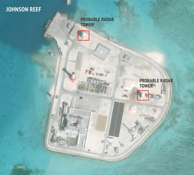 Radar Trung Quốc xây trái phép trên đảo nhân tạo thuộc quần đảo Trường Sa của Việt Nam - Ảnh: CSIS