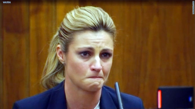 Nữ bình luận viên thể thao Erin Andrews đã không cầm được nước mắt trước phiên tòa - Ảnh chụp từ clip