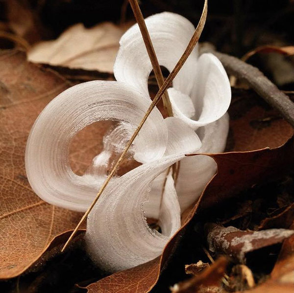 Một loại hoa vô cùng đặc biệt chỉ nở trong đêm, khi thời tiết trở nên băng giá và sẽ tự “tiêu tan” trước khi trời rạng sáng. Thực chất, đây là một hiện tượng “hoá băng” của hơi nước thoát ra từ thân cây nhưng lại tạo ra thành những cánh hoa tuyệt đẹp.