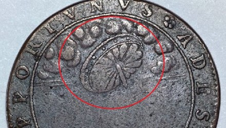 Trong khi đồng xu này được đúc vào khoảng thời gian từ năm 1680 đến 1856 thì còn có một đồng xu khác, được đúc vào năm 1648 cũng có hình ảnh “đĩa bay” tương tự.