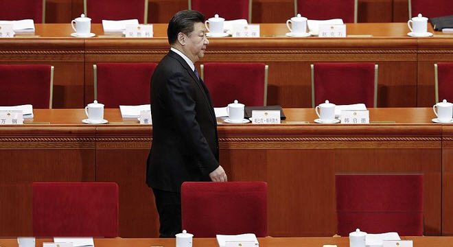 Chủ tịch Trung Quốc Tập Cận Bình bước vào Đại lễ đường nhân dân Bắc Kinh dự lễ khai mạc Đại hội Nhân đại Trung Quốc hôm 5/3. (Ảnh: Getty Images)
