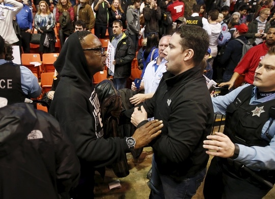 Hàng trăm người biểu tình tụ tập bên ngoài địa điểm tổ chức chiến dịch vận động tại Trường ĐH Illinois vài giờ trước khi ông Trump xuất hiện. Bên trong khán phòng, những người ủng hộ và phản đối ứng viên này xô xát nhau.