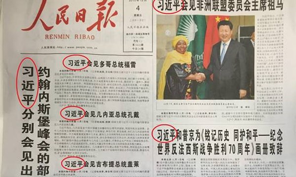 Trang nhất một tờ báo toàn đưa tin về ông Tập Cận Bình