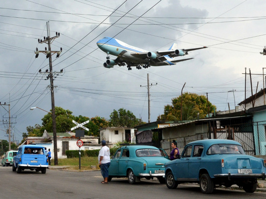 Ngay từ khi chiếc chuyên cơ Air Force 1 (Không lực 1) bay là là trên bầu trời Havana, người dân Cuba đã sẵn sàng đón chào Tổng thống Mỹ Barack Obama.