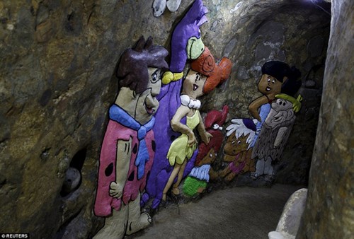 Căn nhà được khoét sâu vào lòng núi với nhiều cửa ra vào khác nhau. Bên ngoài mỗi cửa ra vào, chủ nhân lại dựng nên những bức điêu khắc mang hình thù lạ mắt. Do nằm trong lòng đất nên càng vào sâu, ánh sáng càng mờ dần.