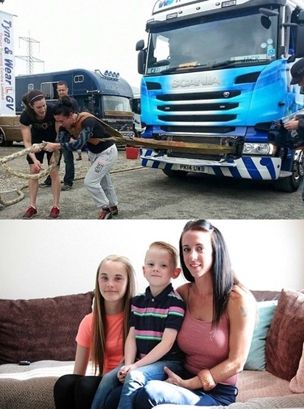 Bà mẹ 2 con Katherine Bartlett (31 tuổi, đến từ Southampton) được công nhận là người phụ nữ khỏe nhất nước Anh với khả năng kéo xe tải và nâng được vật nặng tới 171,46 kg.