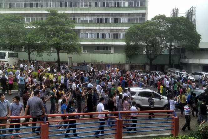 Người lao động Trung Quốc ở Khu công nghiệp Yue Yuen, thành phố Đông Quản, xuống đường đình công - Ảnh: Reuters