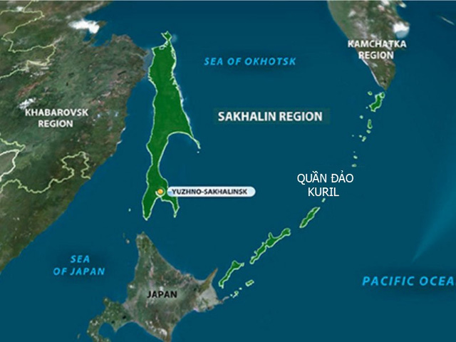 Vị trí quần đảo Kuril mà Nga đang kiểm soát. Nhật Bản gọi đây là Lãnh thổ phương Bắc.