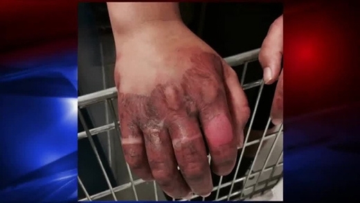 Cận cảnh bàn tay phồng rộp do nước chanh của Morgan. (Ảnh: CBS)