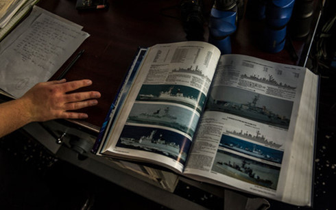 Cuốn tài liệu tra cứu về các loại tàu của Trung Quốc trên tuần dương hạm Chancellorsville. (Ảnh: New York Times)