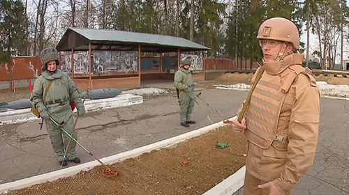 Các binh sĩ Nga được huấn luyện dò gỡ mìn trước khi triển khai tới Syria. Ảnh: RT