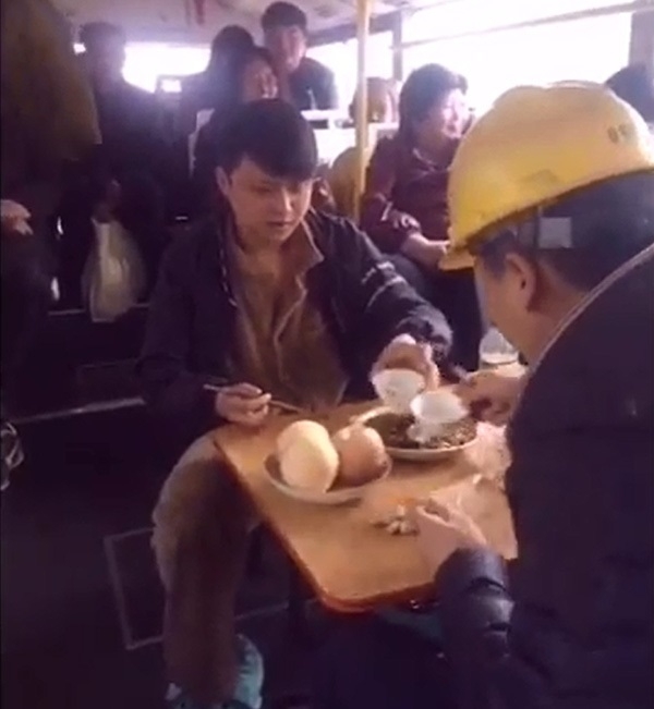 Xe buýt là một phương tiện đi lại công cộng. Thế nhưng nhiều người ở Trung Quốc lại làm như đây chính là ngôi nhà thứ 2 của mình. Họ thản nhiên nằm ngủ, thậm chí kê bàn ăn uống trên xe buýt