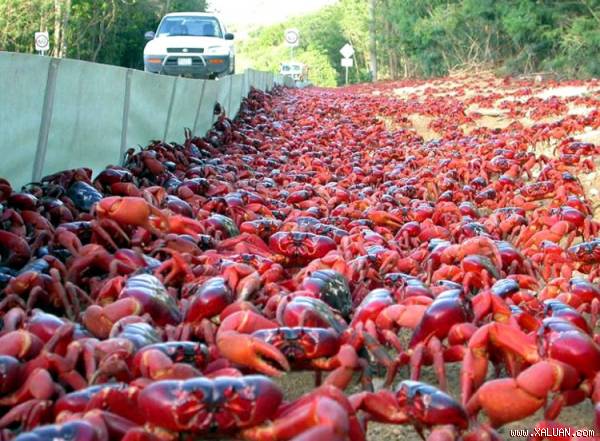 Hòn đảo Giáng Sinh ở Úc là nơi xảy ra hiện tượng kì lạ này. Vào khoảng giữa tháng 10 và 11, những con cua đỏ trong vùng bắt đầu di cư từ trong những khu rừng xuống dưới đại dương để sinh sản và đẻ trứng.