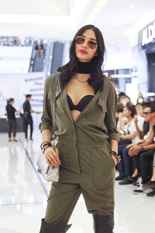 Cô diện bộ áo liền quần, đi bốt cao và để lộ nội y phóng khoáng