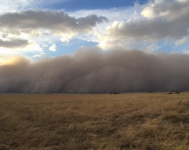Theo AP, những cơn gió mạnh 96km/giờ ngày 6-4 đã "gom" bụi từ Colorado và Kansas, sau đó đưa tới Texas Panhandle, tạo nên đám mây bụi khổng lồ bao trùm hầu khắp khu vực này.