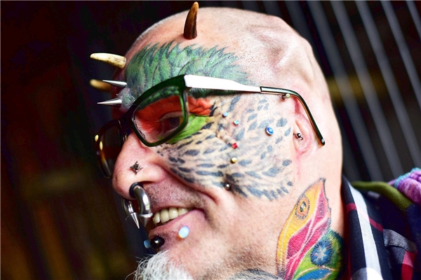 Erik Sprague, sinh năm 1972 ở Texas, Hoa Kì. Anh đã quyết định mài răng nhọn, cấy sừng lên trán, chẻ đôi lưỡi và xăm toàn thân để giống với thằn lằn.