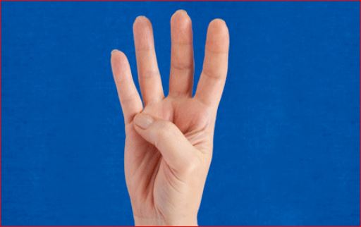 Giơ bàn tay thẳng lên với tư thế thoải mái, gập ngón cái vào lòng bàn tay sao cho đầu ngón cái chạm vào phần cuối của ngón út.