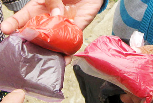 Ba mẫu bột mà ngư dân Phú Yên thường dùng nhuộm ruốc. Ảnh: P.H