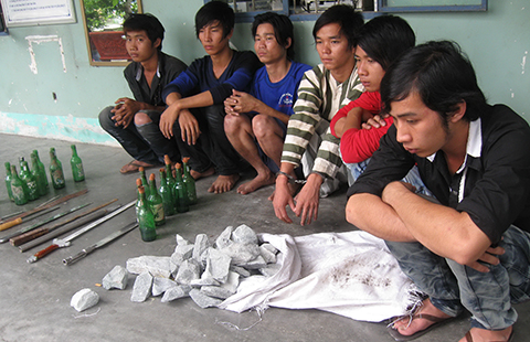 Một nhóm nghi can bị bắt giữ cùng hung khí khi chuẩn bị thanh toán trong đợt cao điểm tổng tấn công tội phạm vùng giáp ranh vừa qua.