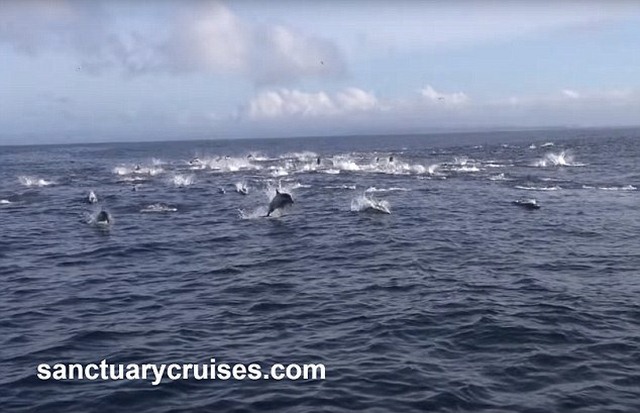 Mặt nước chấn động vì hàng ngàn cá heo nhảy lên.