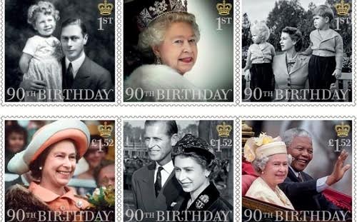 Hãng Royal Mail cũng phát hành bộ tem 6 chiếc nhằm tôn vinh vai trò của Nữ hoàng Elizabeth trong suốt 90 năm qua. Tất cả các mẫu tem này sẽ được bán rộng rãi tại bưu điện kể từ hôm nay, ngày sinh nhật Nữ hoàng.