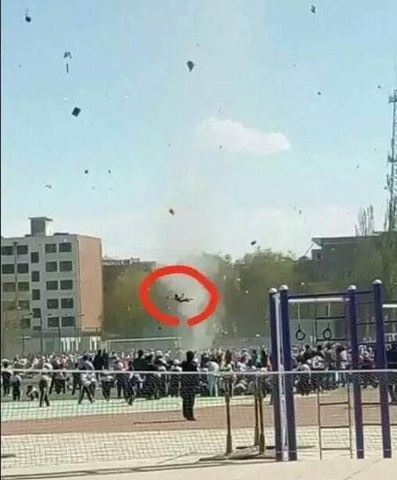 Ngày 20.4 vừa qua, vào lúc 4 giờ 25 phút chiều giờ địa phương, một trường tiểu học ở quậnQua Châu, tỉnh Cam Túc, Trung Quốc đã xảy ra hiện tượng lốc xoáy giữa lúc học sinh đang tập trung ngoài sân vận động. Một em nhỏ không may đã bị gió xoáy hút lên không trung 5m rồi rớt xuống đất. Các em học sinh khác may mắn chạy thoát.Trang tin Net Ease cho biết ngay khi tiếp đất, em nhỏ đã được đưa tới bệnh viện kiểm tra. Kết quả cho thấy cậu bé bị thương nhẹ ở đầu. Vụ việc đang được các cơ quan chức năng Trung Quốc điều tra thêm.Lốc xoáy phát triển từ một cơn dông, thường từ ổ dông rất mạnh hay siêu mạnh nên ở đâu có dông dữ dội là ở đó có thể có lốc xoáy. Đặc điểm của lốc xoáy là sức tàn phá rất lớn và thường kéo người, vật, phương tiện và nhà cửa lên trời, gây thiệt hại rất lớn nếu dông lốc mạnh.
