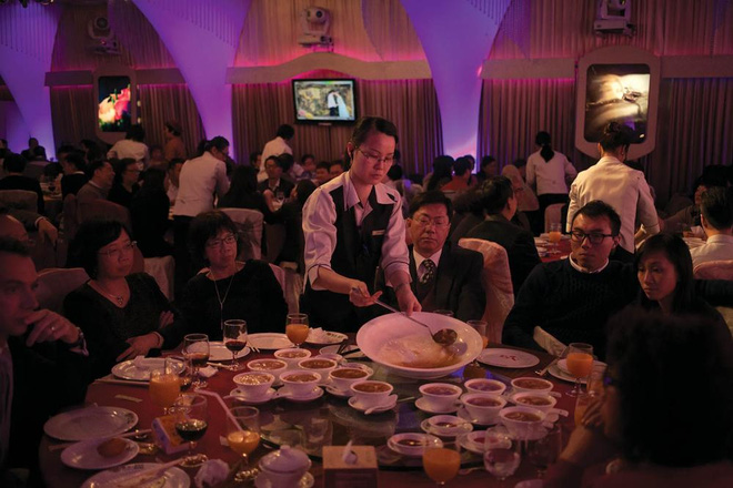 Súp vi cá mập được phục vụ tại một bàn tiệc ở Hong Kong.