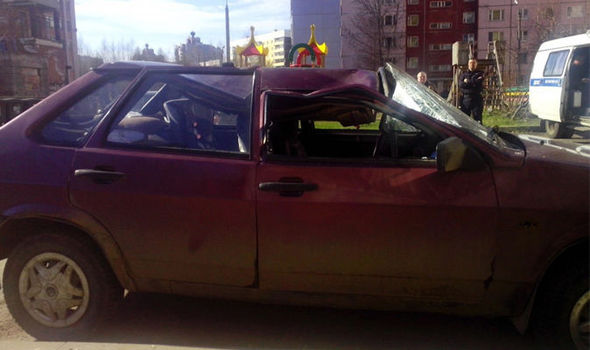 "Người hàng xóm của tôi nghe thấy tiếng động lớn vào lúc 3h sáng. Sau đó, cô ấy trông thấy một người đàn ông nằm trên nóc xe của tôi. Bây giờ chúng tôi không có xe để đi lại", người chủ chiếc xe hơi tên là Alexandra Notarova cho hay.