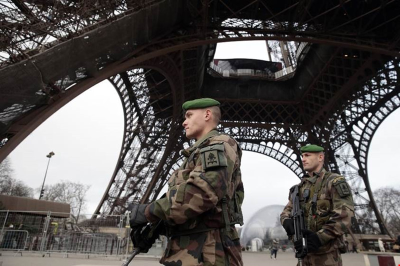 Binh sĩ tuần tra tại Paris sau khi xảy ra vụ khủng bố báo Charlie Hebdo năm 2015. (Ảnh: AFP)