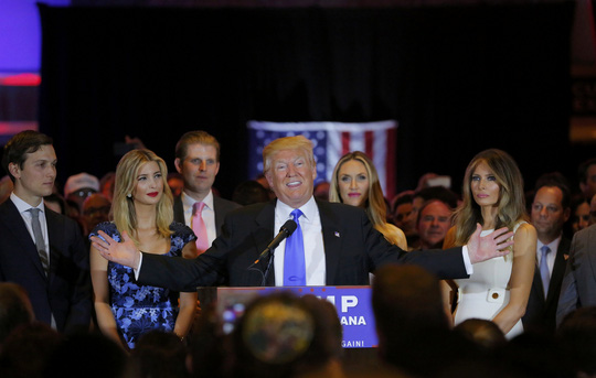 Tỉ phú Donald Trump phát biểu sau chiến thắng ở bang Indiana Ảnh: REUTERS