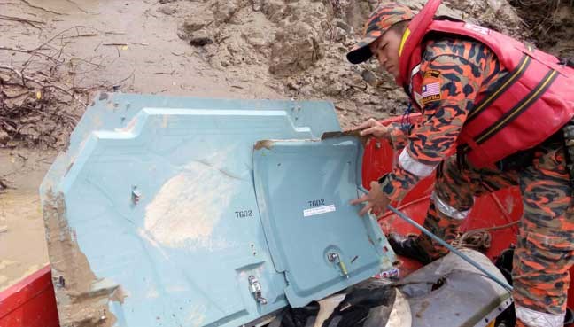 Lực lượng cứu hộ tìm thấy một mảnh vỡ của chiếc máy bay. (Nguồn: freemalaysiatoday.co m)