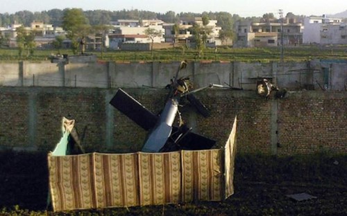 Một trực thăng của quân đội Mỹ bị rơi trong cuộc đột kích nhằm vào dinh thự của Osama bin Laden tại Abbottabad, Pakistan tháng 5/2011 (Ảnh: AFP)