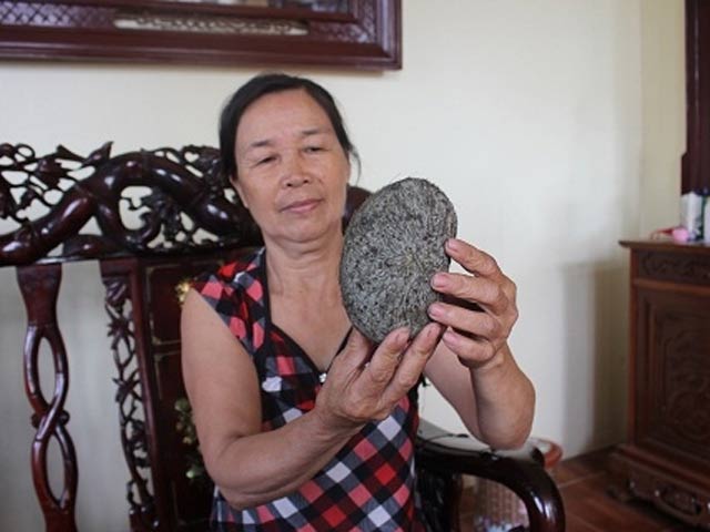 Vật thể lạ đang được nghi là “cát lợn” tại gia đình bà Trần Thị Mai.