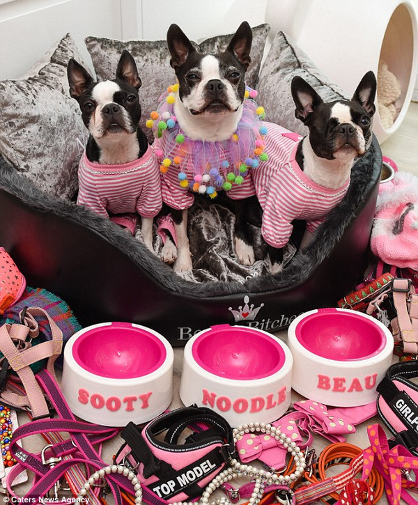 Cụ thể, Katy đã tiêu xài hết 27.000 bảng Anh (tương đương khoảng hơn 900 triệu đồng) trong vòng 1 năm qua chỉ để nuông chiều 3 chú chó bằng quần áo đắt tiền, phụ kiện long lanh và đồ nội thất làm bằng tay. Thêm vào đó, bọn thú cưng còn vinh dự có được phòng khách riêng, bếp riêng và tủ đồ sành điệu nữa.