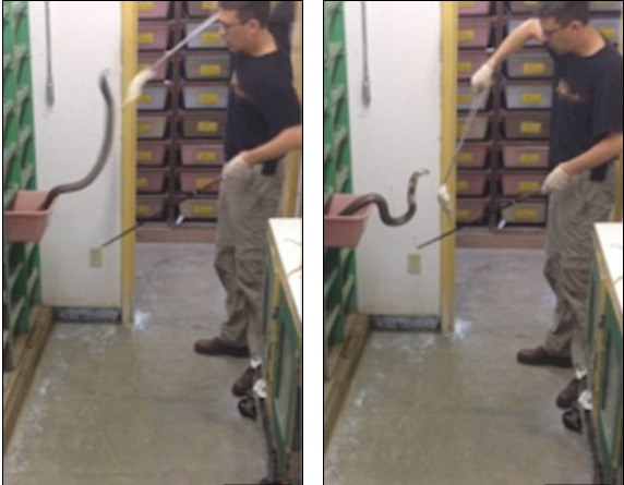 Mới nghe qua th́ công việc có vẻ đơn giản nhưng loại thú mà Justin đảm trách việc cho ăn hàng ngày lại là rắn hổ mang vô cùng nguy hiểm. Công việc của Justin là mở ngăn tủ nhốt rắn, gắp thức ăn thả vào cho chúng, sau đó đóng ngăn tủ lại chuyển sang ổ kế bên. Điều đáng nói ở đây là không phải con rắn nào cũng ngoan ngoăn nằm im để nhận đồ ăn, nhiều con phi ra đớp lấy con mồi hoặc thậm chí là lao hẳn ra ngoài và có thể gây nguy hiểm cho anh chàng bất kỳ lúc nào.