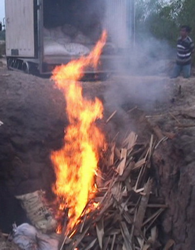 Nội tạng thối bị tiêu hủy chiều nay. Ảnh: Thái Hà
