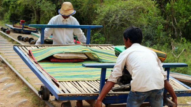 Tàu hỏa Tre là giải pháp bình dân. Sàn gỗ, được gọi là norry, được ráp từ các nguyên vật liệu có sẵn và được di chuyển bằng cách để lên trên các bánh xe lăn trên đường ray, giống như những chiếc thuyền gondola nổi tiếng của Venice, Ý vậy.