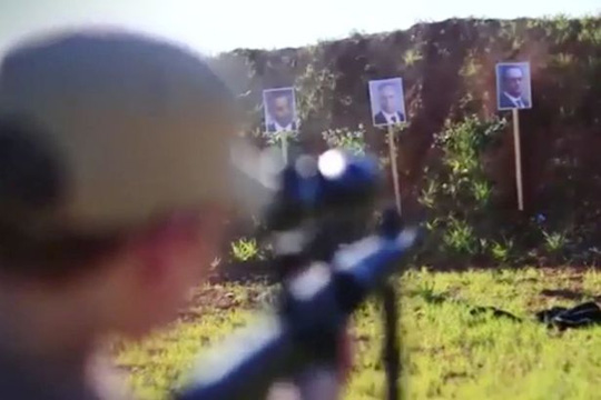 Trong một cảnh quay khác, những đứa bé này đang tập bắn vào hình của hàng loạt nguyên thủ quốc gia, trong đó có Tổng thống Mỹ Barack Obama, tổng thống nga vladimir putin và Tổng thống Pháp Francois Holland.
