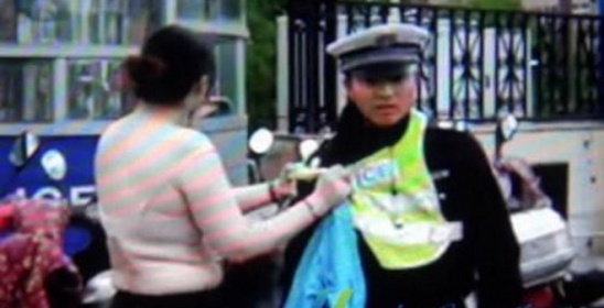 Từ những hình ảnh ghi lại được, có thể thấy rõ người phụ nữ mặc quần bò đen, trên người chỉ còn lại nội y, hai tay nắm chặt áo của viên cảnh sát, nhất định không buông.