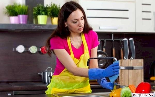 Khi lau chùi tủ bếp, bạn nên cẩn thận vì chất liệu của tủ bếp có thể không thích hợp với các chất tẩy rửa. Nhất là các tủ bếp bằng gỗ không có lớp véc-ni chống thấm thì tuyệt đối bạn không được lau chùi bằng các chất tẩy rửa, điều đó sẽ làm hỏng bề mặt tủ.