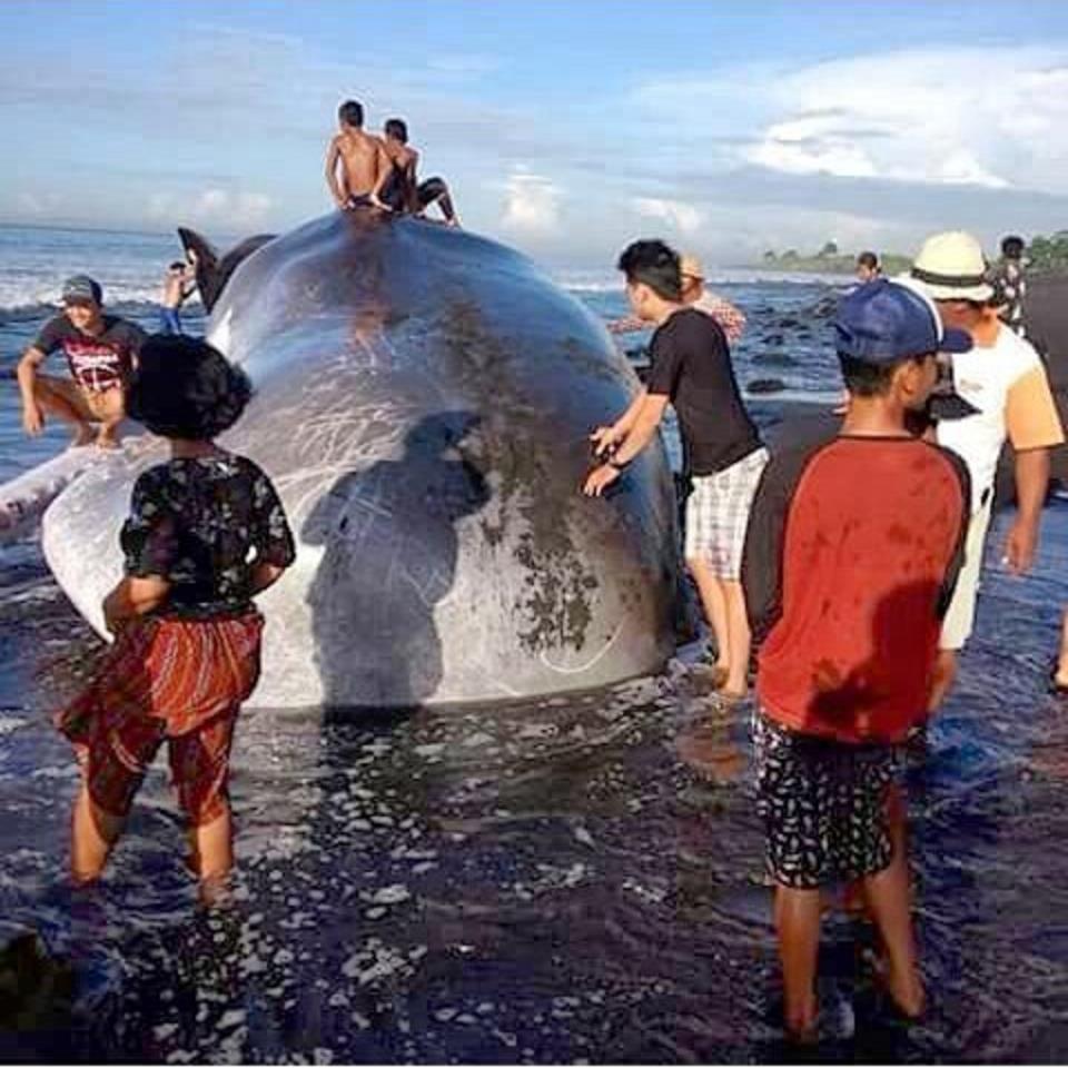 Đua nhau trèo lên xác cá voi khổng lồ để chụp ảnh ở Indonesia
