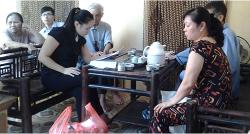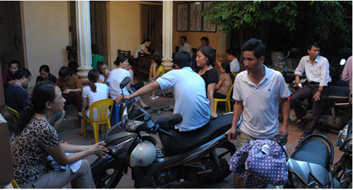Chúng tôi đứng cạnh một thanh niên chừng 25-26, lân la hỏi chuyện, cô cho biết mình là Hoàng Phương Mai, hiện đang là nhân viên thu ngân tại một siêu thị lớn ngoài Hà Nội, Mai cho biết cách đây vài tuần cô đi táo, lau giấy thấy ra máu liền đến khám bác sĩ, thì được chuẩn đoán đã mắc trĩ độ 1, từ một người bạn làm cùng quê ở An Khánh giới thiệu, Mai tìm về nhà lương y Nguyễn Thị Hiền, lo không gặp được thầy thuốc, Mai đã về nhà bạn từ chiều qua, sáng sớm nay cô đã túc trực ngay đầu ngõ, đợi giờ làm việc của lương y Hiền là vào gặp ngay.
