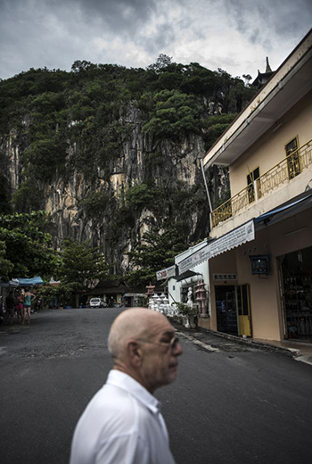 Dưới chân ngọn núi Ngũ Hành Sơn ở Đà Nẵng, nhiều phụ nữ đội nón lá đi bán dạo đồ lưu niệm. Một cầu thang dẫn du khách lên đỉnh núi, từ vị trí này họ có thể một mặt ngắm ngoại ô thành phố miền trung, mặt kia ngắm Biển Đông.