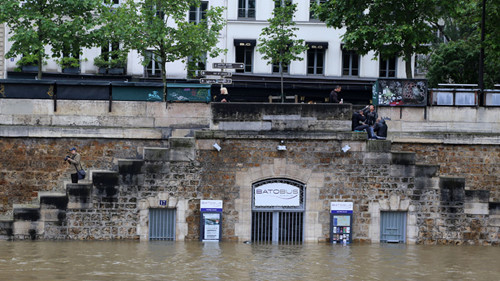 Tại Paris, theo quan sát của phóng viên, nước sông Seine dâng lên rất cao và vẫn còn tiếp tục dâng nữa. Theo giới thủy văn thì hôm 2.6 nước đã dâng lên mức 4,9 m, cao kỷ lục trong vòng 100 năm qua. Dòng sông Seine hiền hòa ngày nào giờ nước đục ngầu, cuộn chảy.