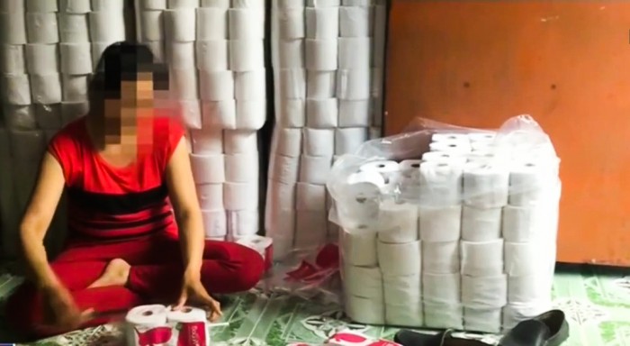Ngoài ra, bà Phương còn khai, cơ sở gia công giấy vệ sinh giả của bà Phương đã đi vào hoạt động được 1 tháng. Tuy nhiên, khi cơ quan chức năng yêu cầu chứng minh nguồn gốc thì bà Phương không xuất trình được giấy phép kinh doanh và các giấy tờ chứng minh nguồn gốc.