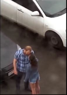 Chàng trai cao lớn đã phải nhận rất nhiều cú đấm, tát và cả đá từ phía cô bạn gái. Điều anh chàng có thể làm là đôi lần ôm lấy người bạn gái với ý xin tha thứ, nhưng không mang lại hiệu quả như mong muốn.